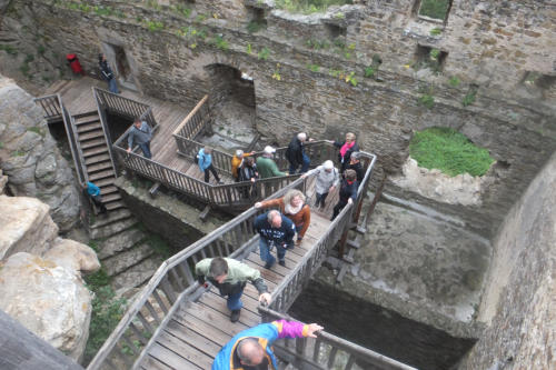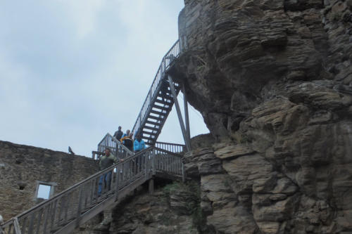 wahre Bilderbuchburg mit Bergfried, steilen Treppenpfaden, Aussichtsterrassen,