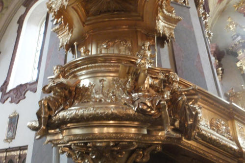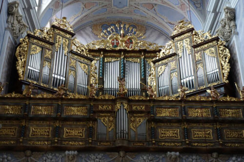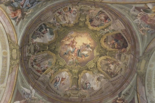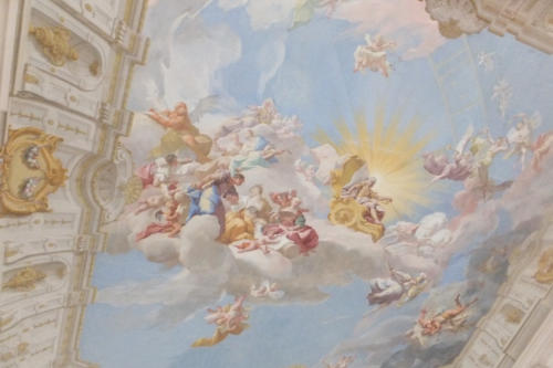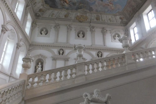 gegen das riesige Treppenbauwerk im Stift Göttweig.